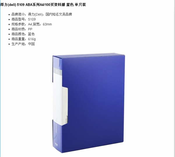 得力5109 100页资料册的商品信息: