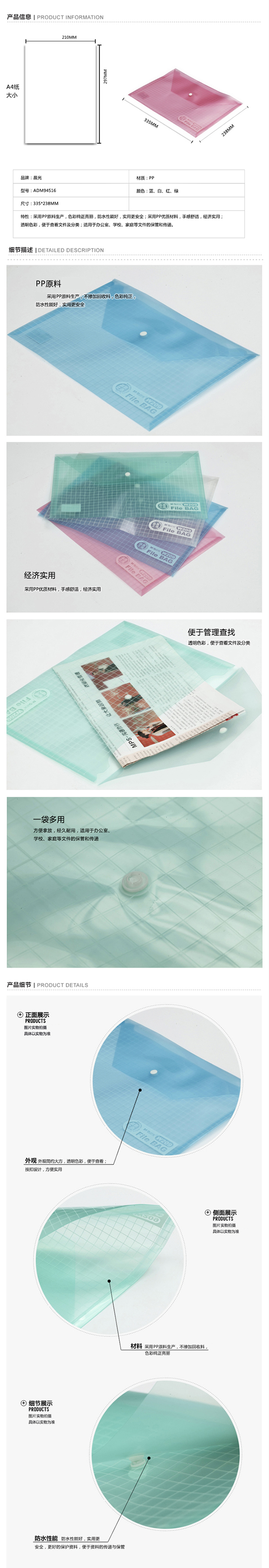 晨光ADM94516纽扣袋 A4透明方格文件袋 学生试卷袋单个装 收纳整的说明: