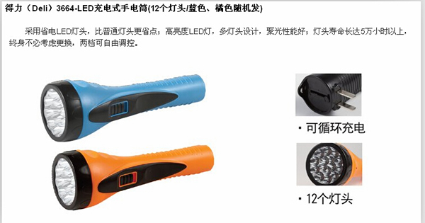 得力3664充电式手电筒的商品信息: