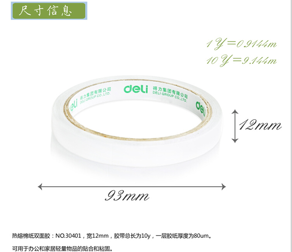 得力30401棉纸双面胶带1.2CM宽的说明: