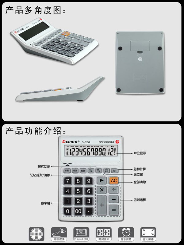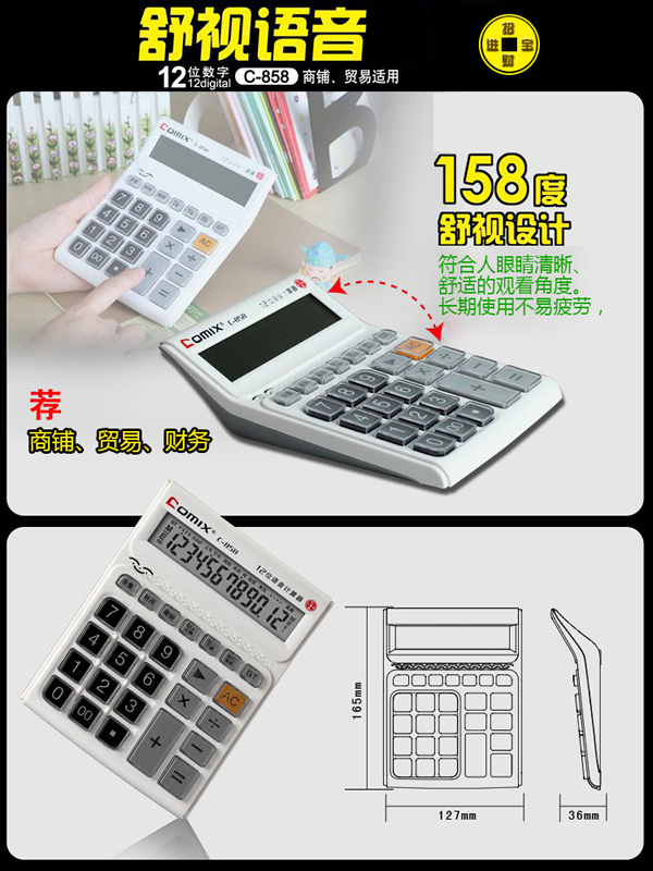 齐心C-858舒视语音计算器 瓷感白 12位商务办公用品计算机的说明:
