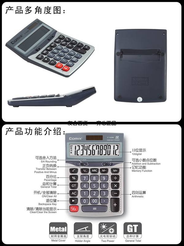 齐心C-1223M 铂金计算器财务会计计算机金属的说明: