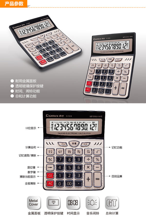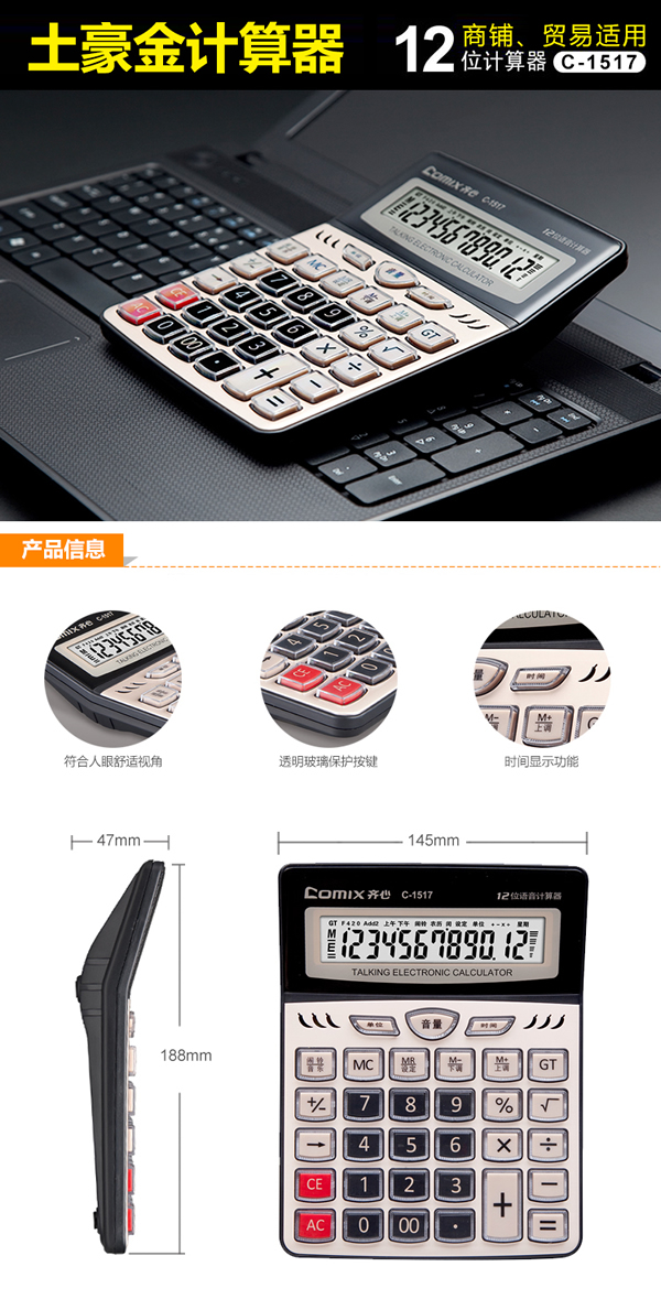 齐心 C-1517 计算器 土豪金语音12位商务办公商铺的说明:
