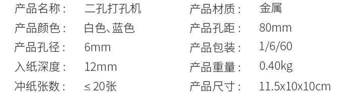 得力0102 φ6mm可打20页两孔打孔器打孔机(带标尺)的说明: