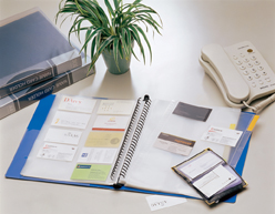 ●A4规格,名片的分类保存,也可储存磁卡和会员卡; ●30孔活页夹,可根据需要增减内页袋,方便调整前后顺序; ●每页可装20张中片; ●配有目录纸和彩色标签纸,方便索引; ●分别装300张、600张。